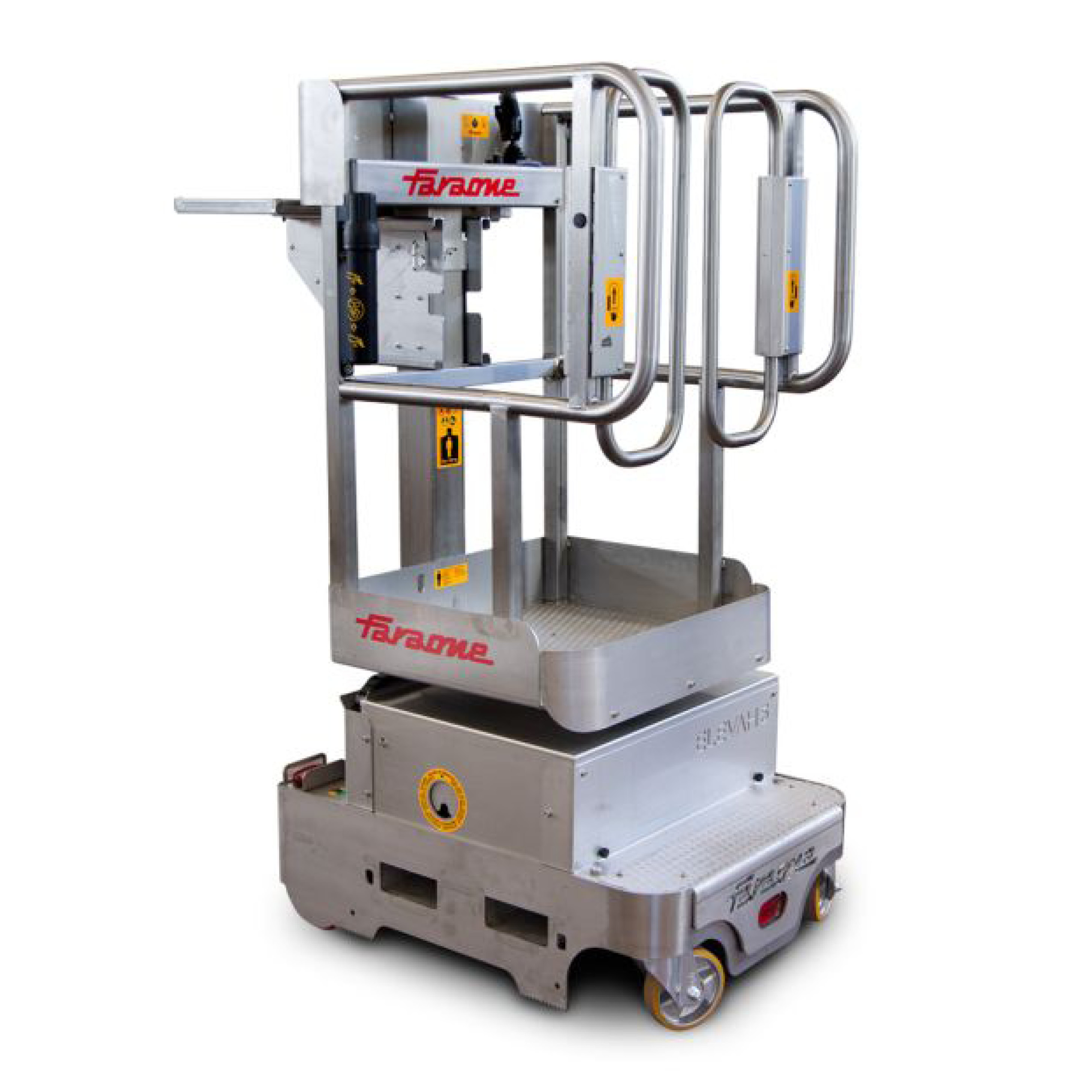 Die Kommissioniergeräte der Elevah-Reihe von Faraone bieten Bestleistung, Sicherheit und Produktivität. Die Maschinen sind kompekt, ergonomisch und teils platzsparend zusammenklappbar.